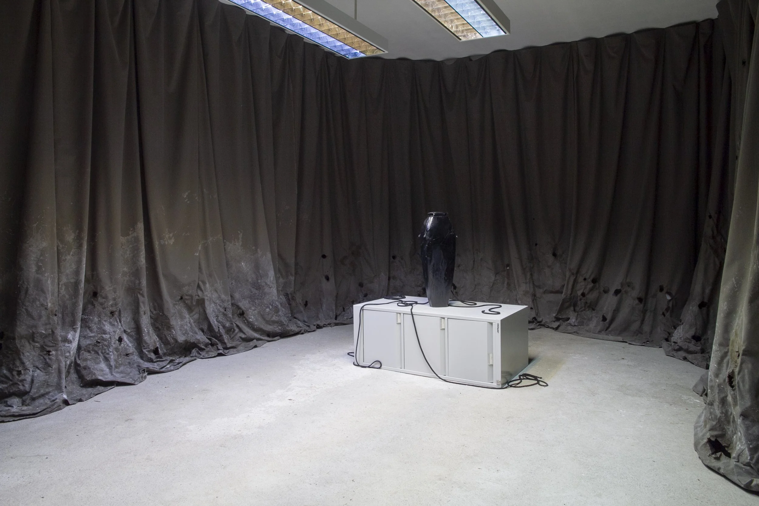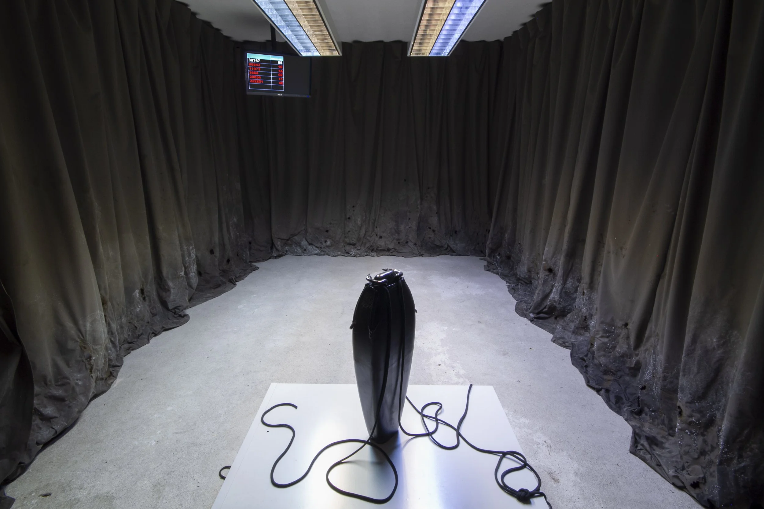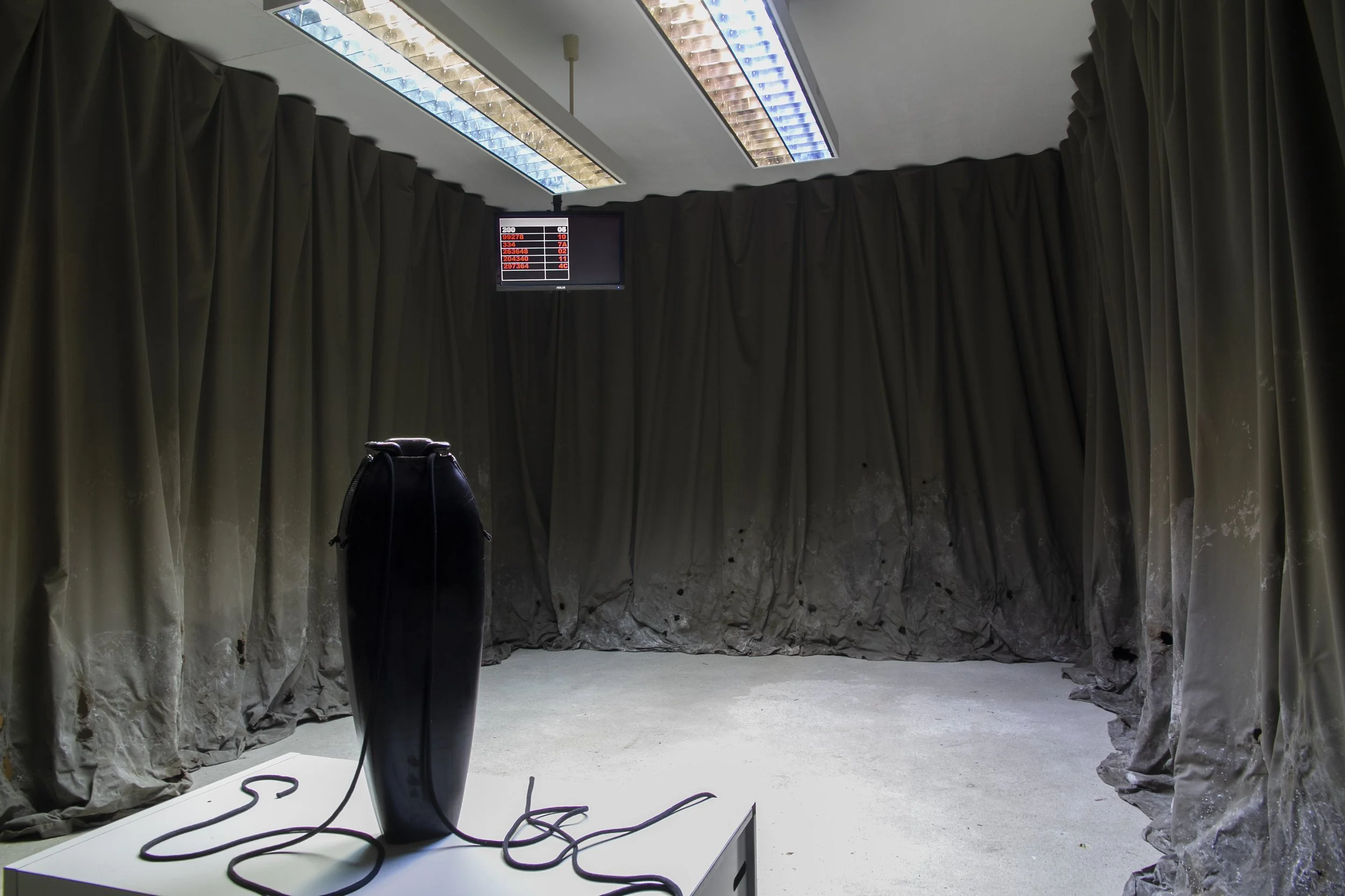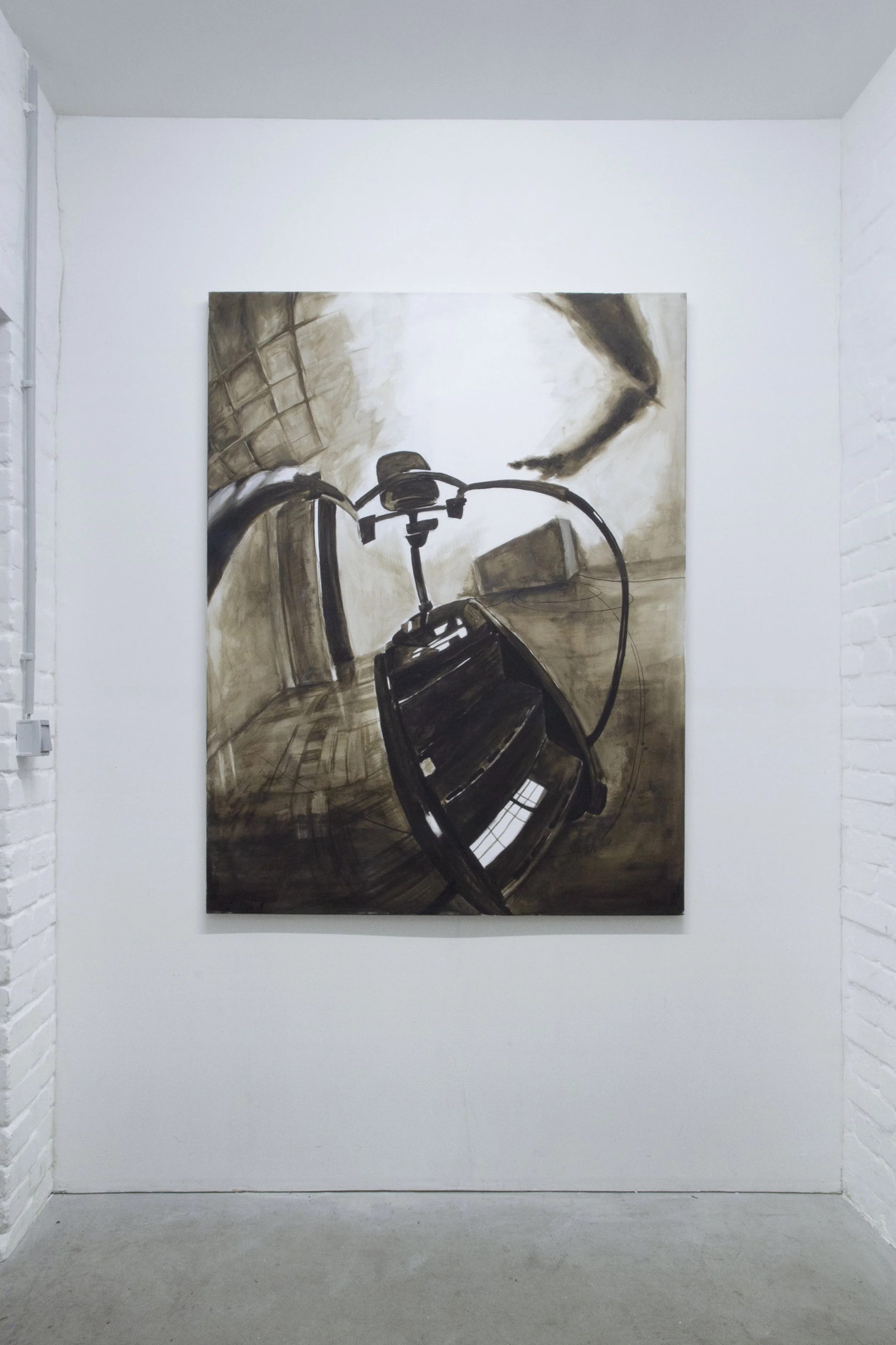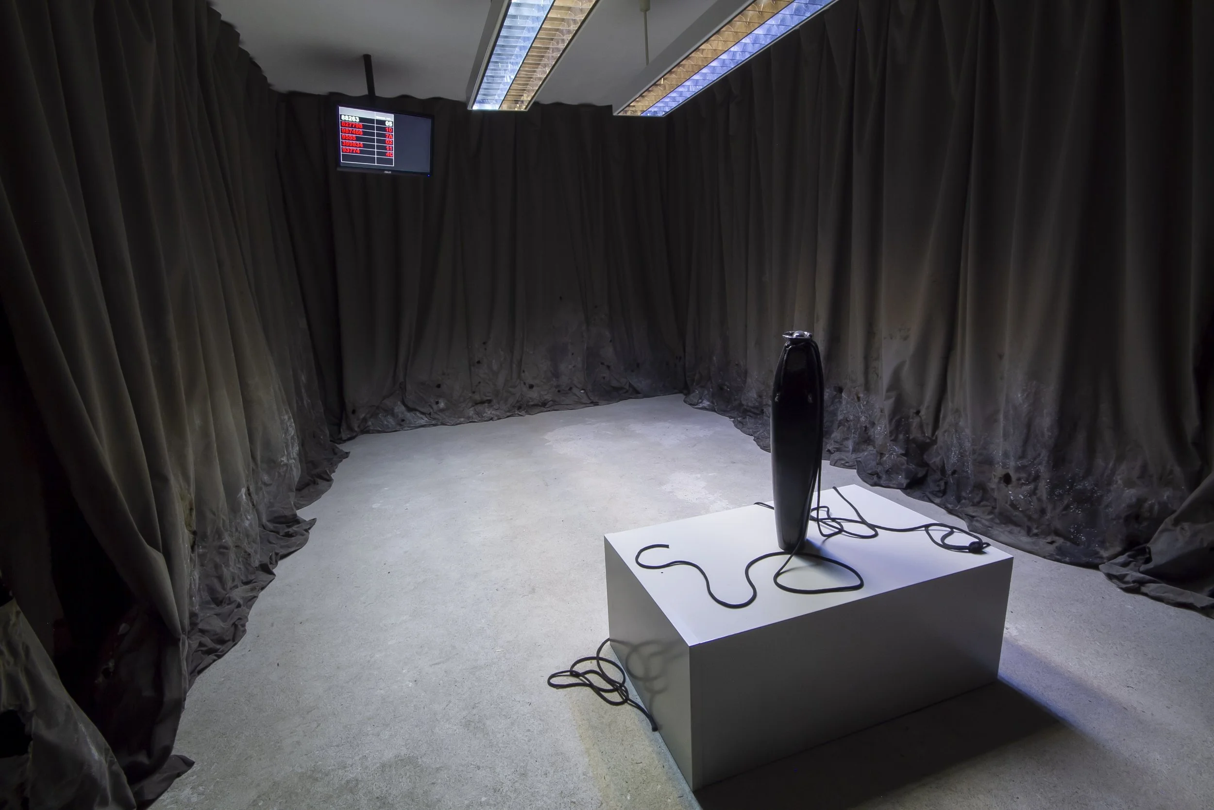 What happens when you look up and everywhere starts to feel the same? Your office is now the bedroom, opening onto the home gym you set up next door – once-separate sites compressed into a singular room designed to make labor a seemingly more convenient process. In The Waiting Room, Hannah Stewart describes living through the collapse of space within techno-feudalism, through combining common bureaucratic and domestic symbols to question the effect that burn-out culture has on the human condition. The installation uses a Kafkaesque narrative that arises within the standardized space, relying on banal triggers to evoke an inescapable scenario.